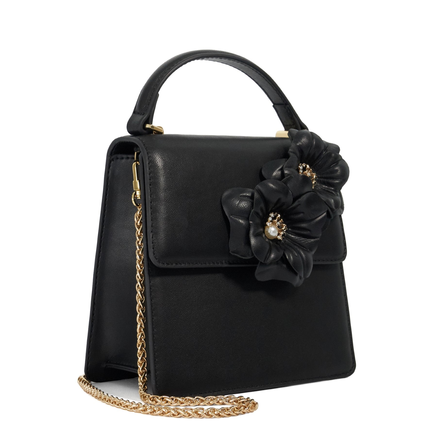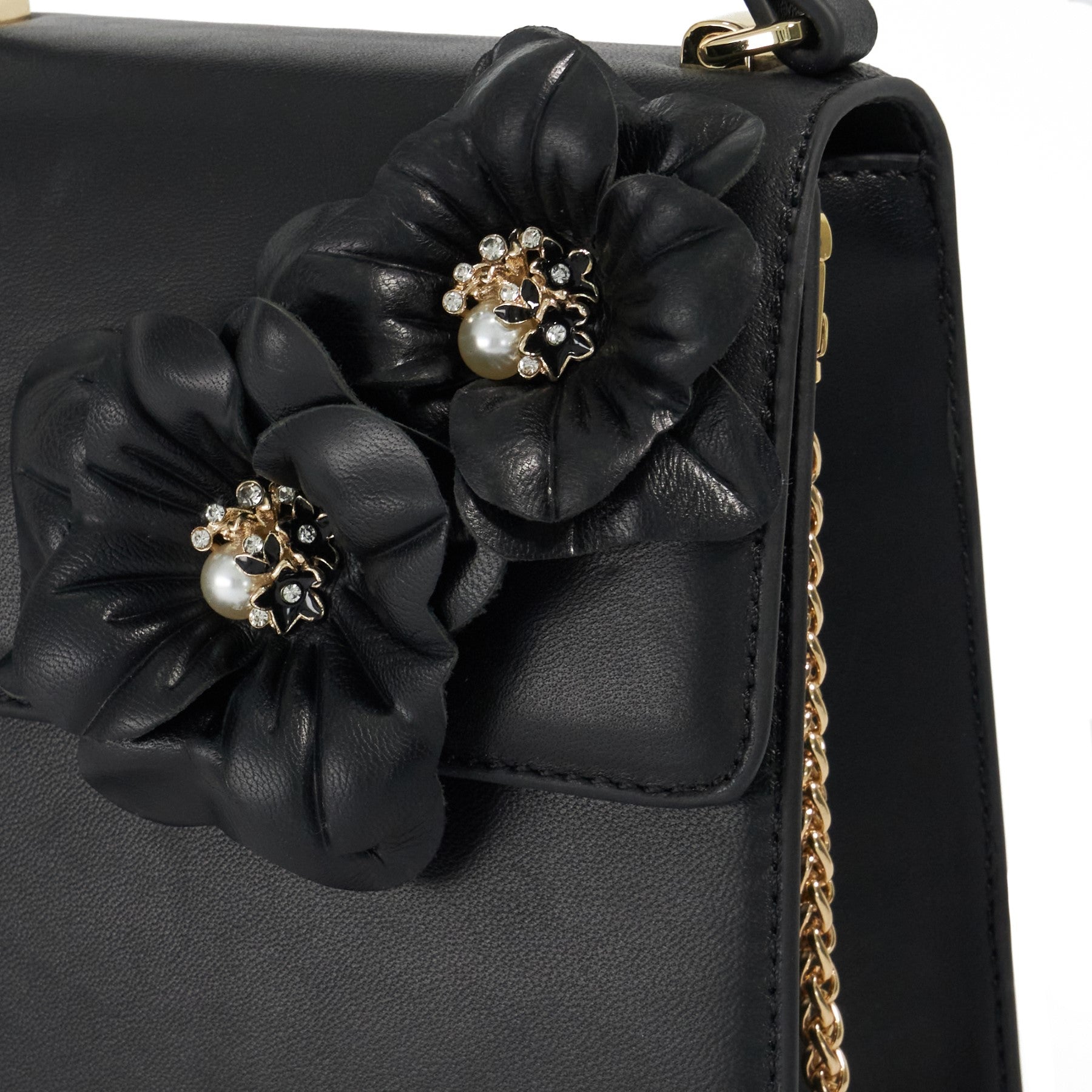 Meticulously crafted this beautiful top handle bag has been embellished with clusters of pearl and enamel detail flowers, embodying feminine glamour. The detachable chain handle allows you to style this as a cross body or shoulder profile, or simply carry it with the top handle.