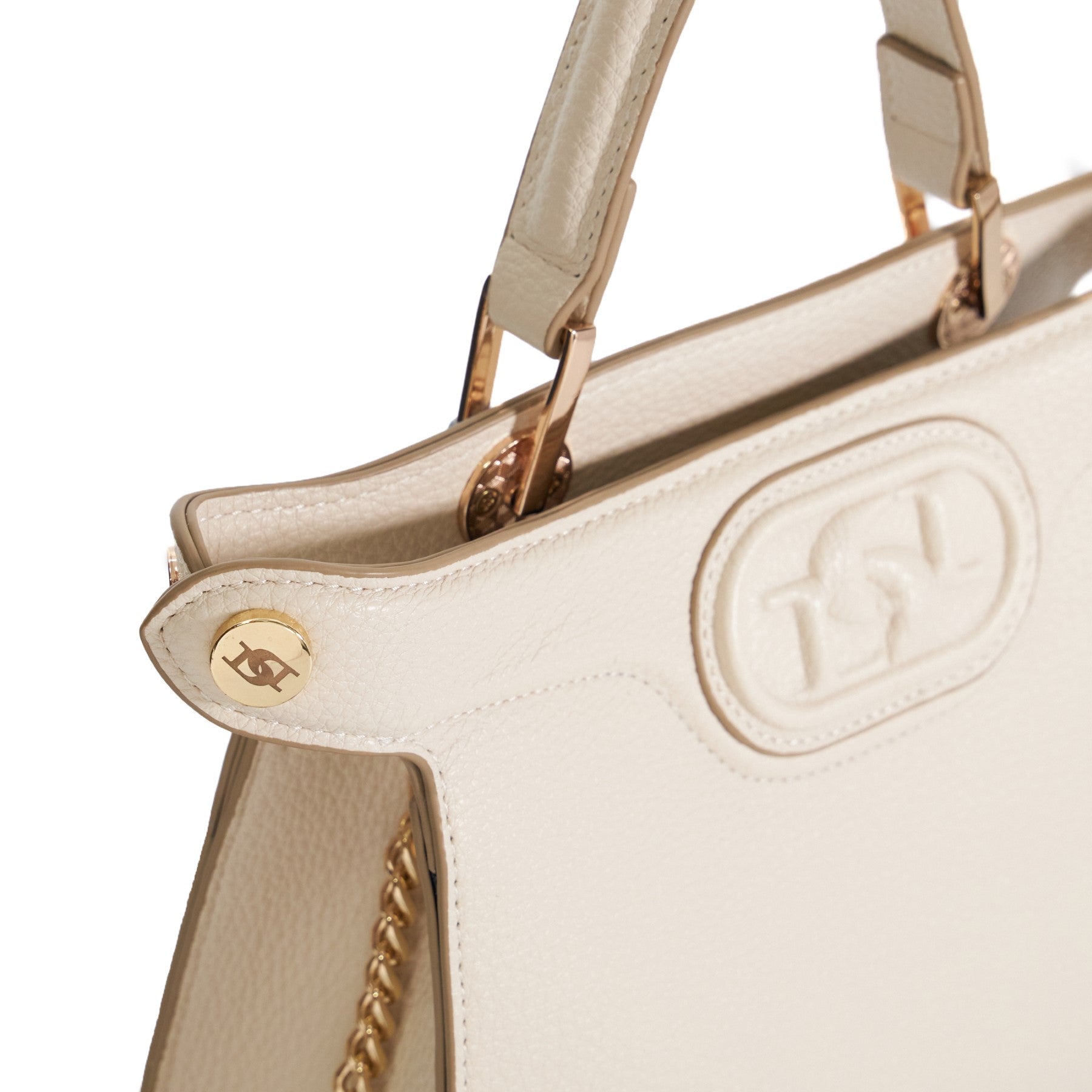 Our timeless Daily tote bag features an embossed logo and top handle. The central monogrammed lined compartment is perfect for your day-to-day essentials  while the part chain shoulder strap can transform the look from a shoulder bag to a cross body and adds to the versatility of this chic style.