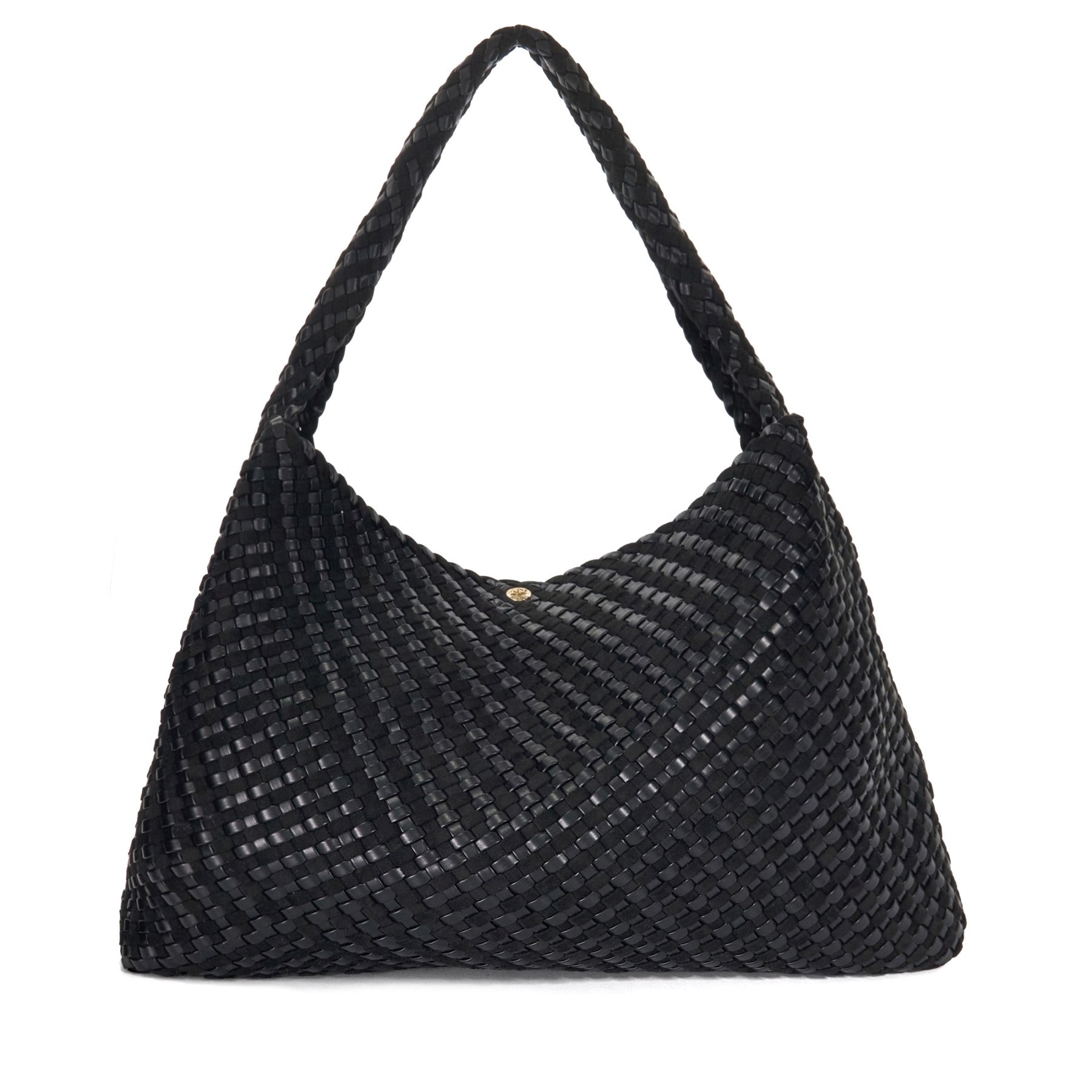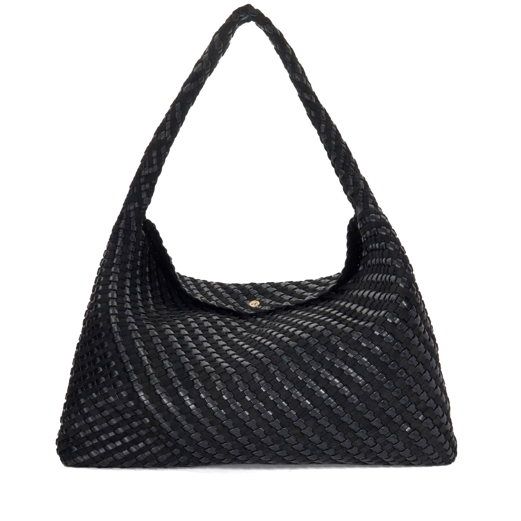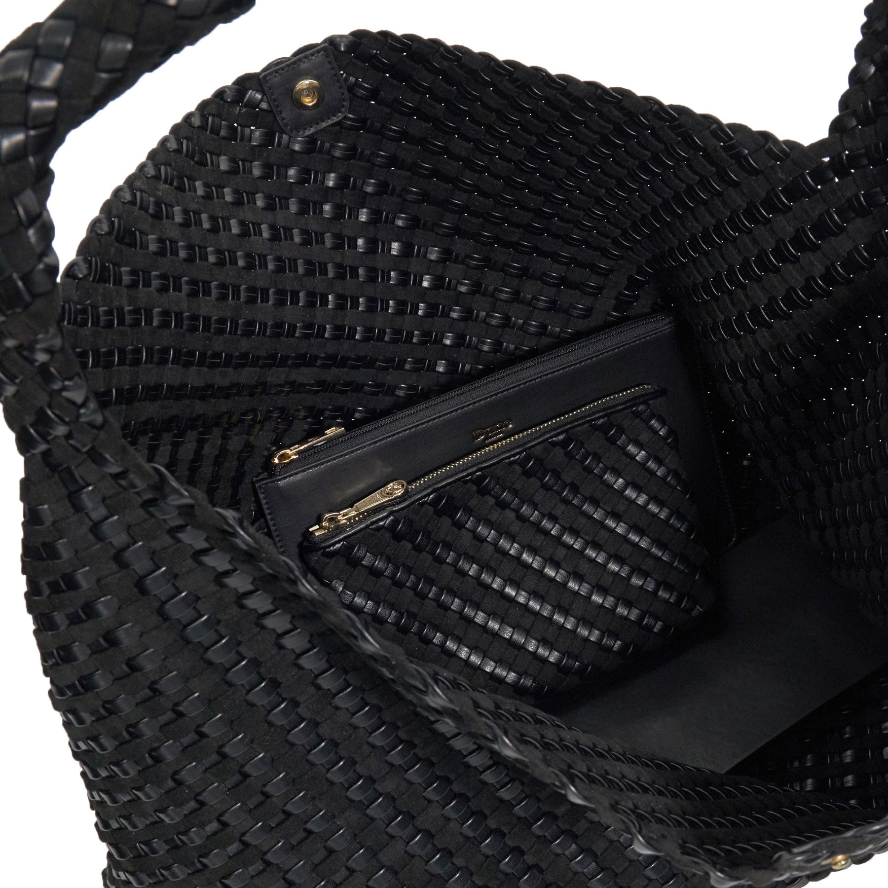 With the return of go big or go home totes we've introduced a runway inspired XL version of our Deliberate woven shoulder bag. Marrying practicality with aesthetic appeal this is the perfect work bag contender and makes an excellent travel companion as well. This slouchy hand-woven profile closes with a branded popper and features an additional woven and smooth double zip-up pouch for organised storage.