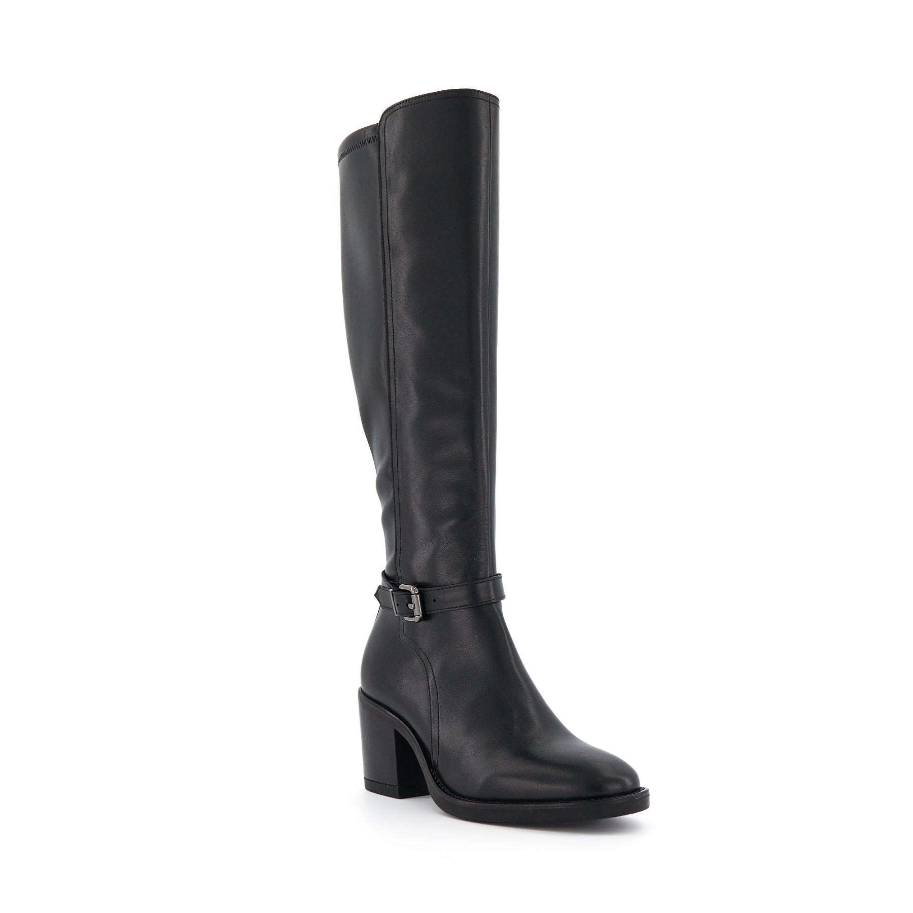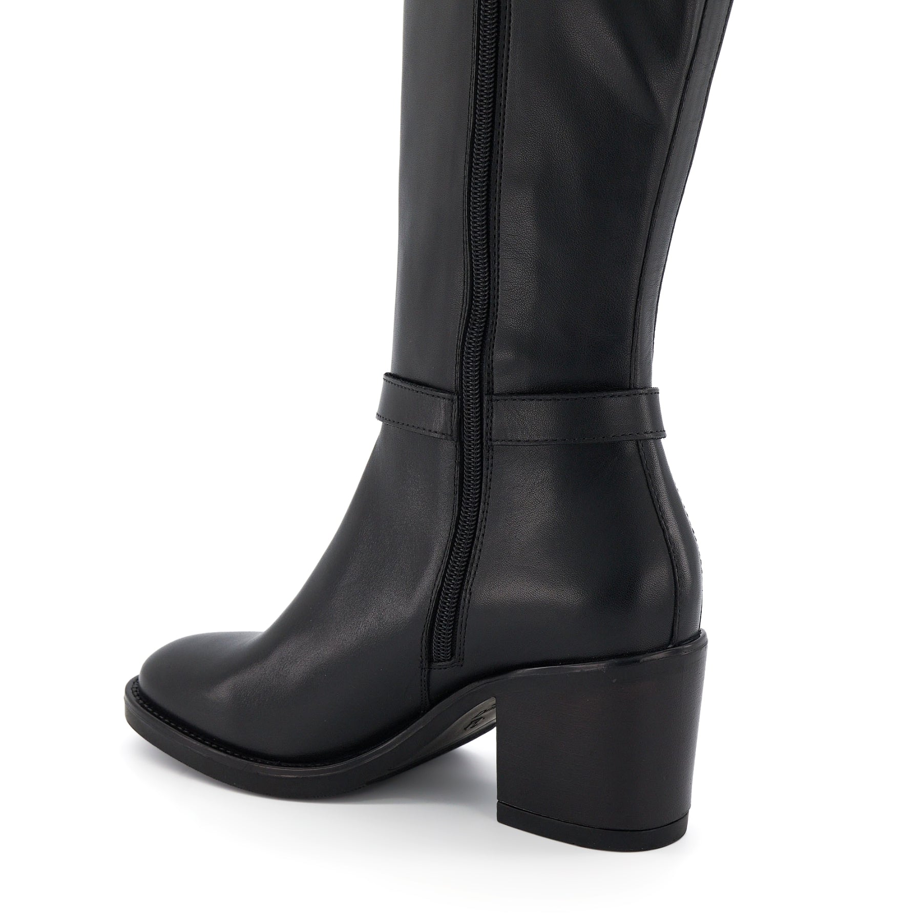 Knee-high boots like Trance are a Dune London signature. Crafted from genuine leather, this round-toed silhouette is detailed with a buckled ankle strap, tonal stitching, and a secure side zip. Set on a medium block heel and culminating with a back-pull-on tab enhanced with our bespoke ‘DD’-interlock branded hardware, this versatile design will become the foundation of everyday dressing.