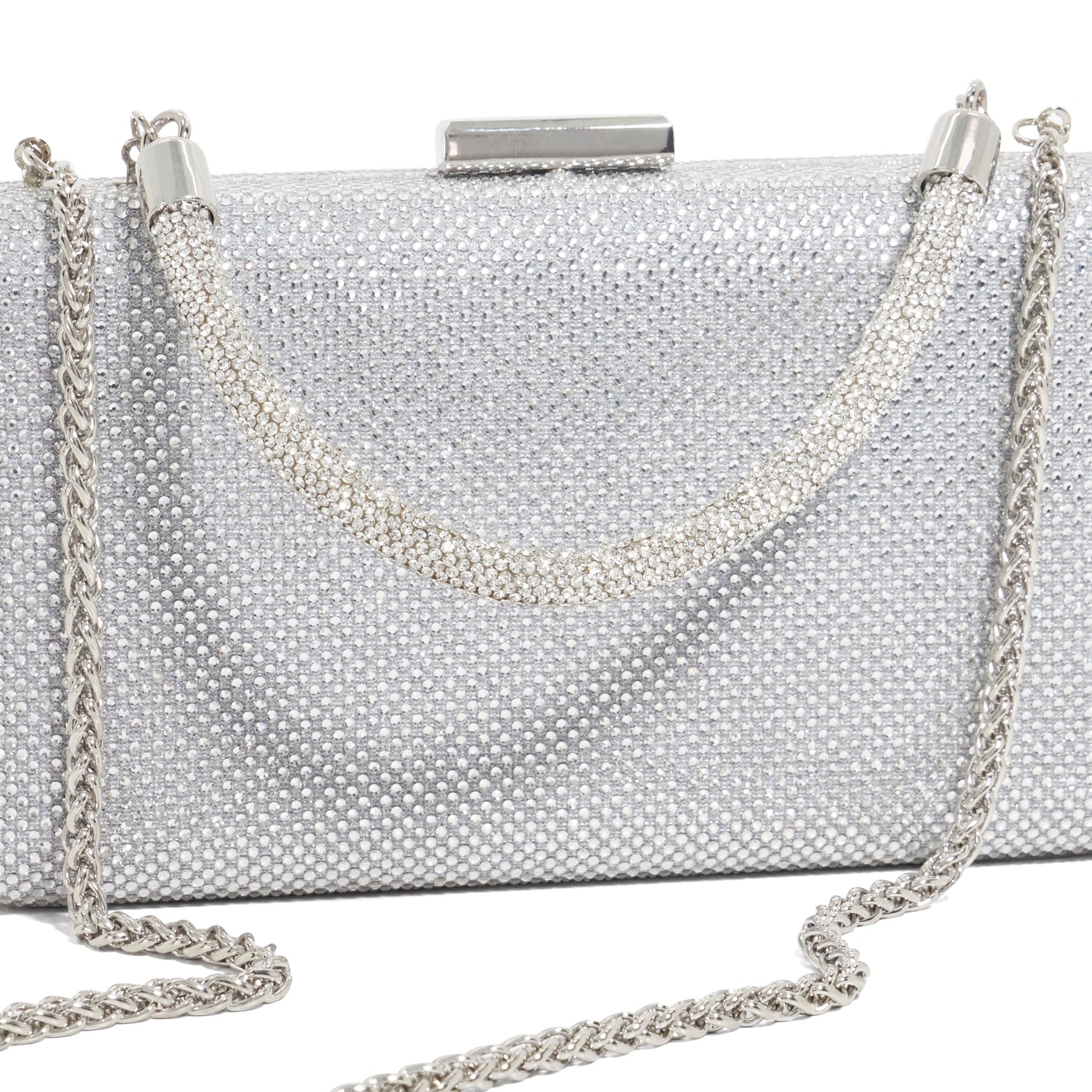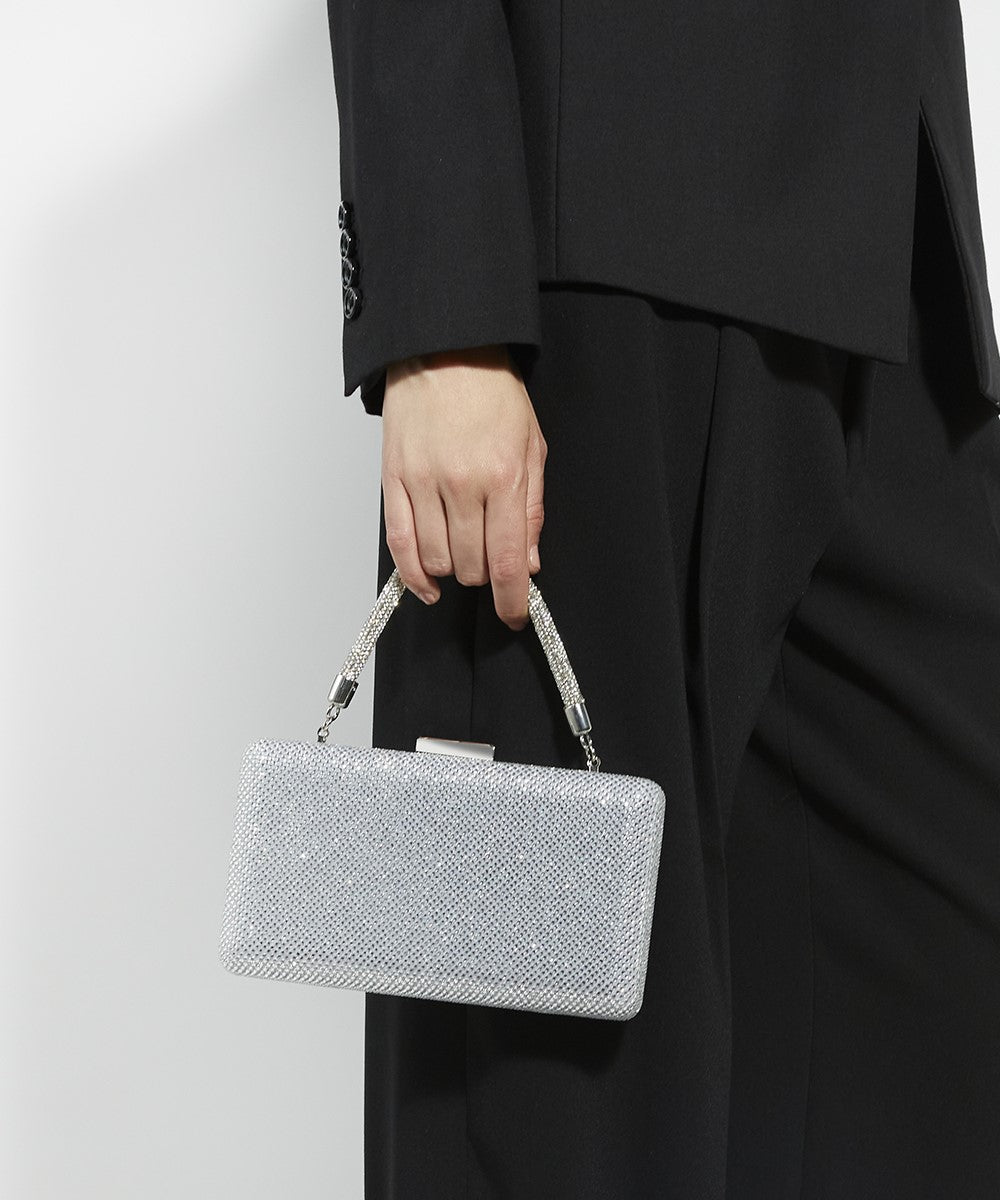 The Beaut clutch is a graceful fusion of craftsmanship and elegance. This structured bag is a signature Dune London style. A sparkling diamante-embellished top handle and ornate clasp adds a touch of glamour  making it the perfect accessory for refined occasions. Carry it as a classic clutch or attach the elegant chain strap to wear over the shoulder  making it the perfect companion for everything from garden parties to evening soirées.