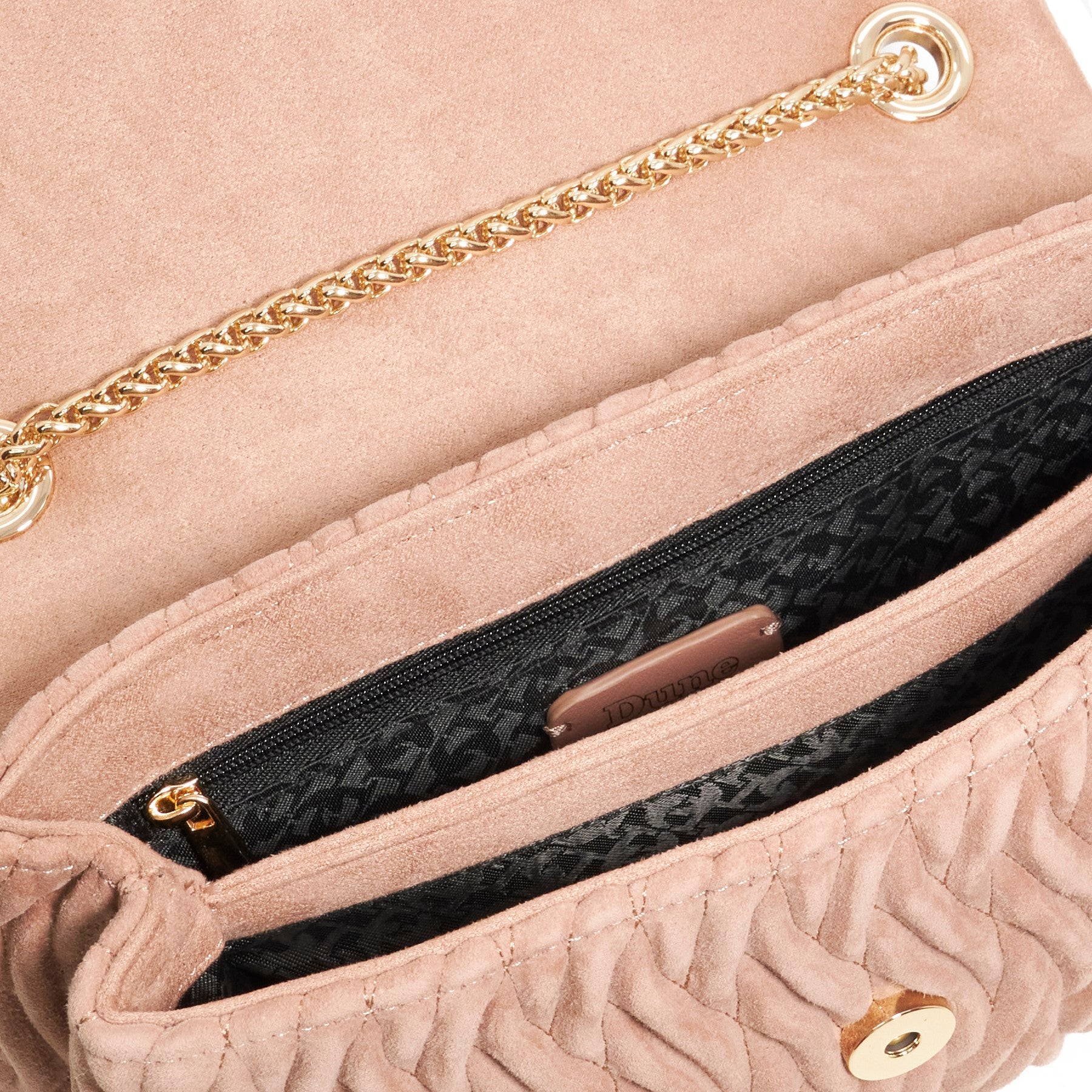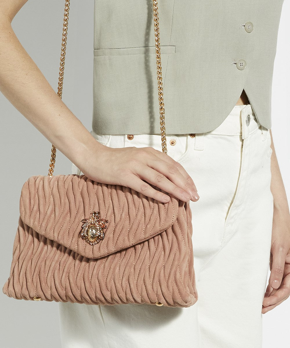 A must-have accessory that's both timeless and on-trend Darling is a new addition to our Premium Collection. A curated selection of signature Dune London styles the collection reflects our commitment to exceptional considered design. Crafted from beautifully soft leather in our new wave quilt this verstaile style can be worn cross body or as a shoulder profile and features our iconic jewelled Dune bug charm which has been meticulously hand crafted with tonal gemstones to match the colour of the leather. Designed with an elegant leather and metal chain handle for ease of wear this investment.